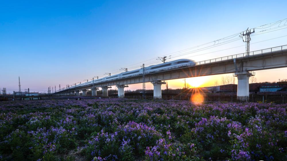 Хурдны галт тэрэг Шаньдүн мужийн Рыжао хотын намгархаг газрын цэцэгсийн дундуур